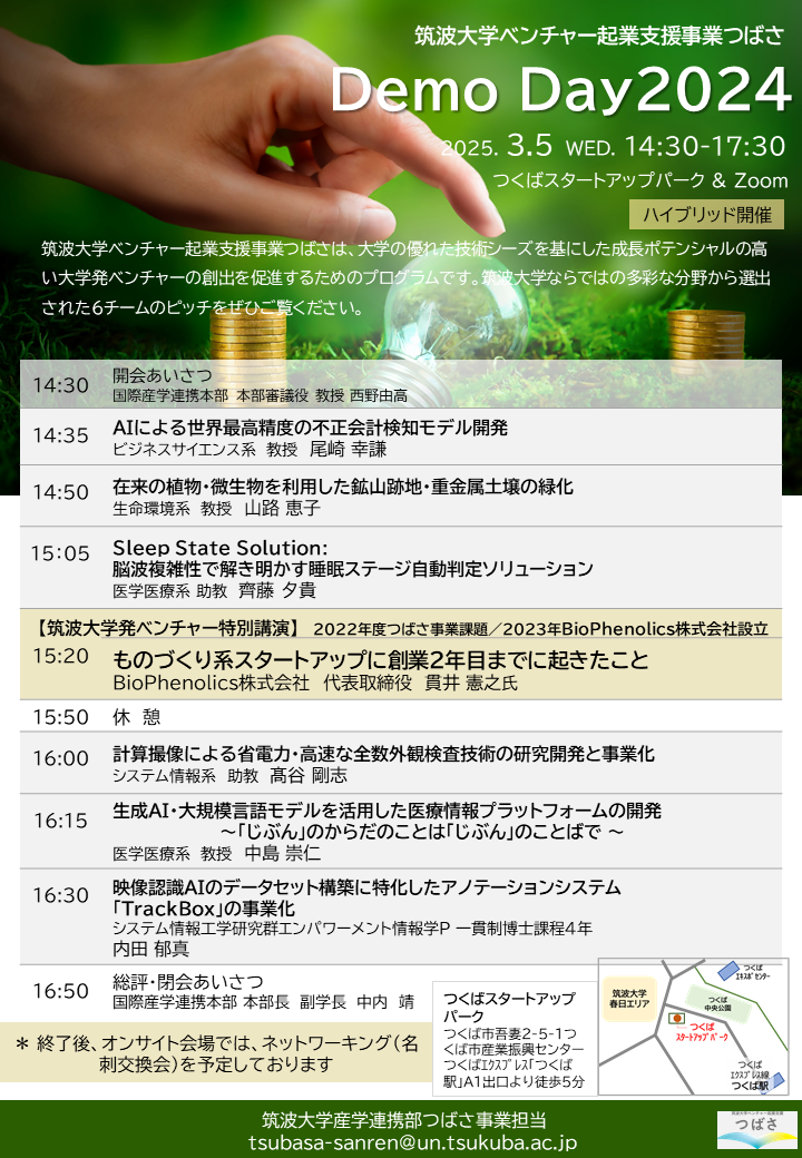 当日の発表プログラム、講演内容についてはフライヤーをご参照ください ➡ DemoDay2024フライヤー