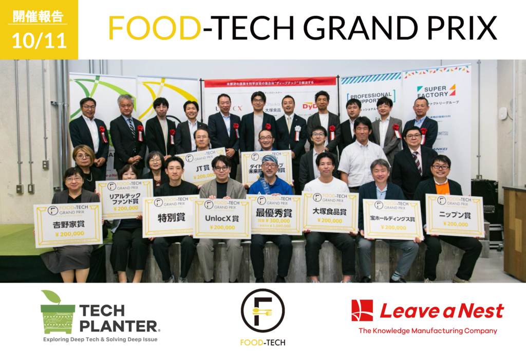2025-10-29 NEWSその他 MED R&D(株)がリバネス主催のフードテックグランプリ2025で JT賞とリアルテックファンド賞をダブルで受賞されました 2025年10月11日:2020年度課題代表者の礒田先生が取締役を務める、MED R&D(株)が、(株)リバネス主催フードテックグランプリ2025で JT賞とリアルテックファンド賞をダブル受賞されました。 ・開催の様子 写真は上記サイトより転載いたしました。